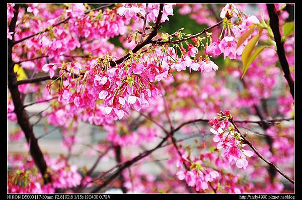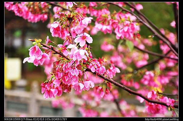 停車場停好車,看著園區內的櫻花已落盡鉛華,惟剩廟埕前方五株的花況還不錯,但拍不到三分鐘就下起雨來,實在是...
