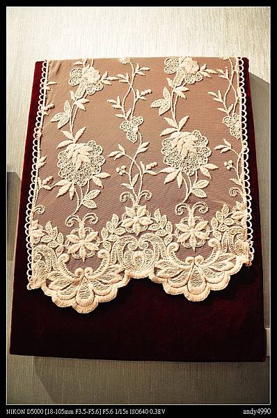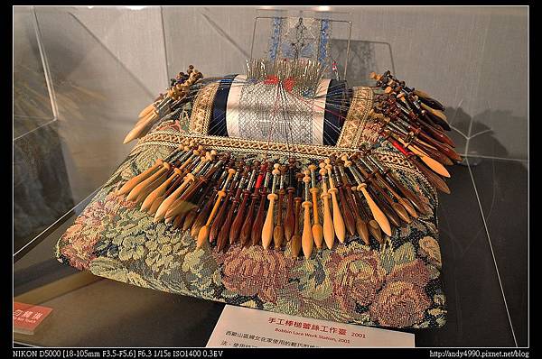 說到婚紗,首先當然不可忽略了蕾絲的重要。蕾絲由歐洲發明,早期的義大利,蕾絲市皇宮貴族的專屬,使用蕾絲越多則越顯高貴,不唯女人,連男人的袖子、領襟也都有蕾絲的綴飾;19世紀的蕾絲則走入資產階級,成為大戶人家的婦女純潔溫柔的象徵;20世紀以後則因工業的普及與進展,蕾絲成為典雅純潔的表徵,並普遍運用於婚紗、禮服之用。下圖的機台則是2001年西歐山區婦女使用的手工棒槌蕾絲工作台
