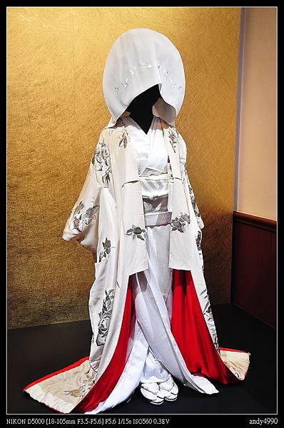 日本的白無垢,日本將傳統婚紗稱為花嫁,計有白無垢及色打掛二種型式,但還是以白無垢為大宗