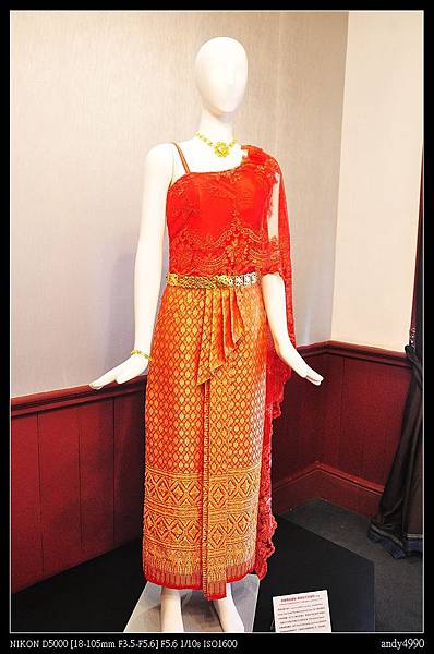 泰國傳統婚紗則為詩麗,主要為單肩無袖上衣,搭配一條長形披肩越過左肩向後背垂下