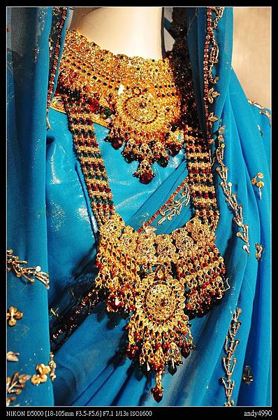 印度婚紗為藍嘎秋麗套裝(LEHENGA CHOLI):秋麗是指短袖半截上衣,藍嘎為低腰長摺裙或長圓裙,另外再搭上一件杜帕塔的長圍巾